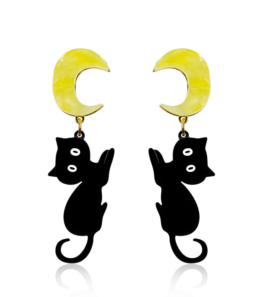 Moon Cat Earrings Acrylic Resin Halloween Statement Jewelry for Women